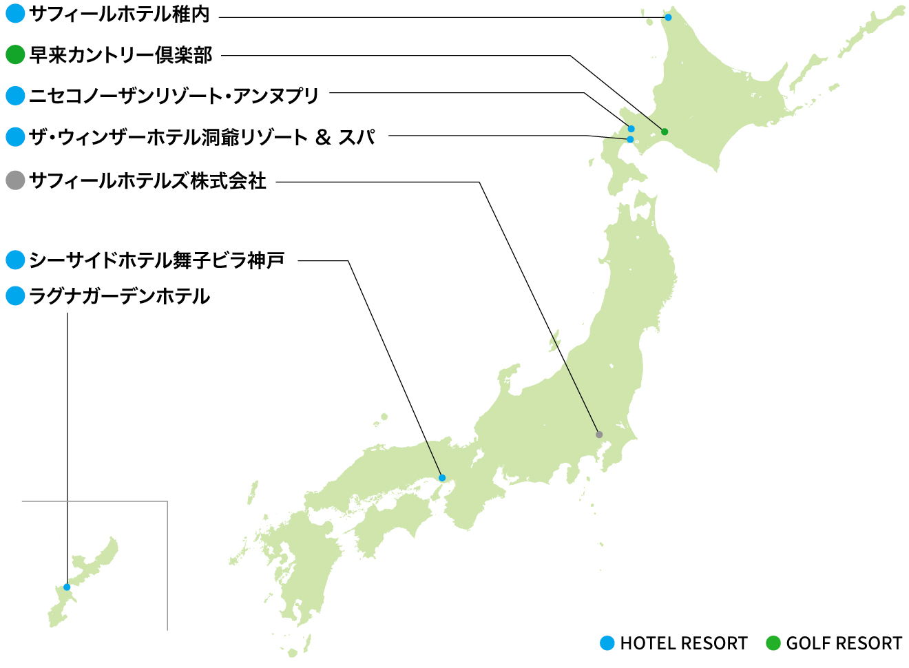 サフィールホテルズでは、地方における人口減少と経済縮小に歯止めをかけ、将来にわたって成長力を確保することを目指した地方創生に取り組んでいます。北海道から沖縄まで、個性あふれるホテル・ゴルフ場・レストランを展開し、訪れる人々にそれぞれの土地での気候・風土に即した、快適で自由な空間を提供しています。また、各地域におけるインフラの一種として人口流出の抑制や、雇用の創出、全国からの誘客効果による地域振興にも貢献しています。